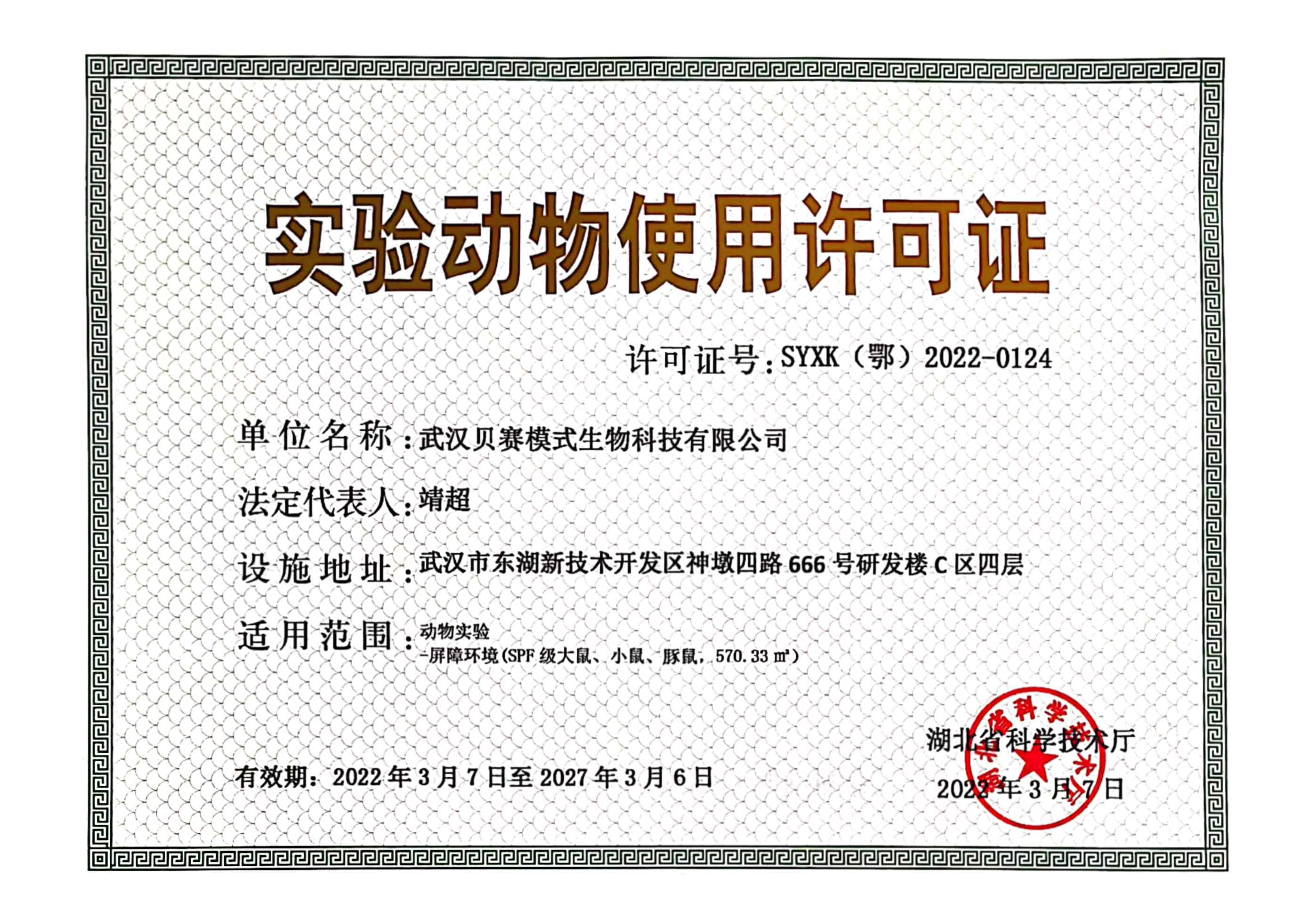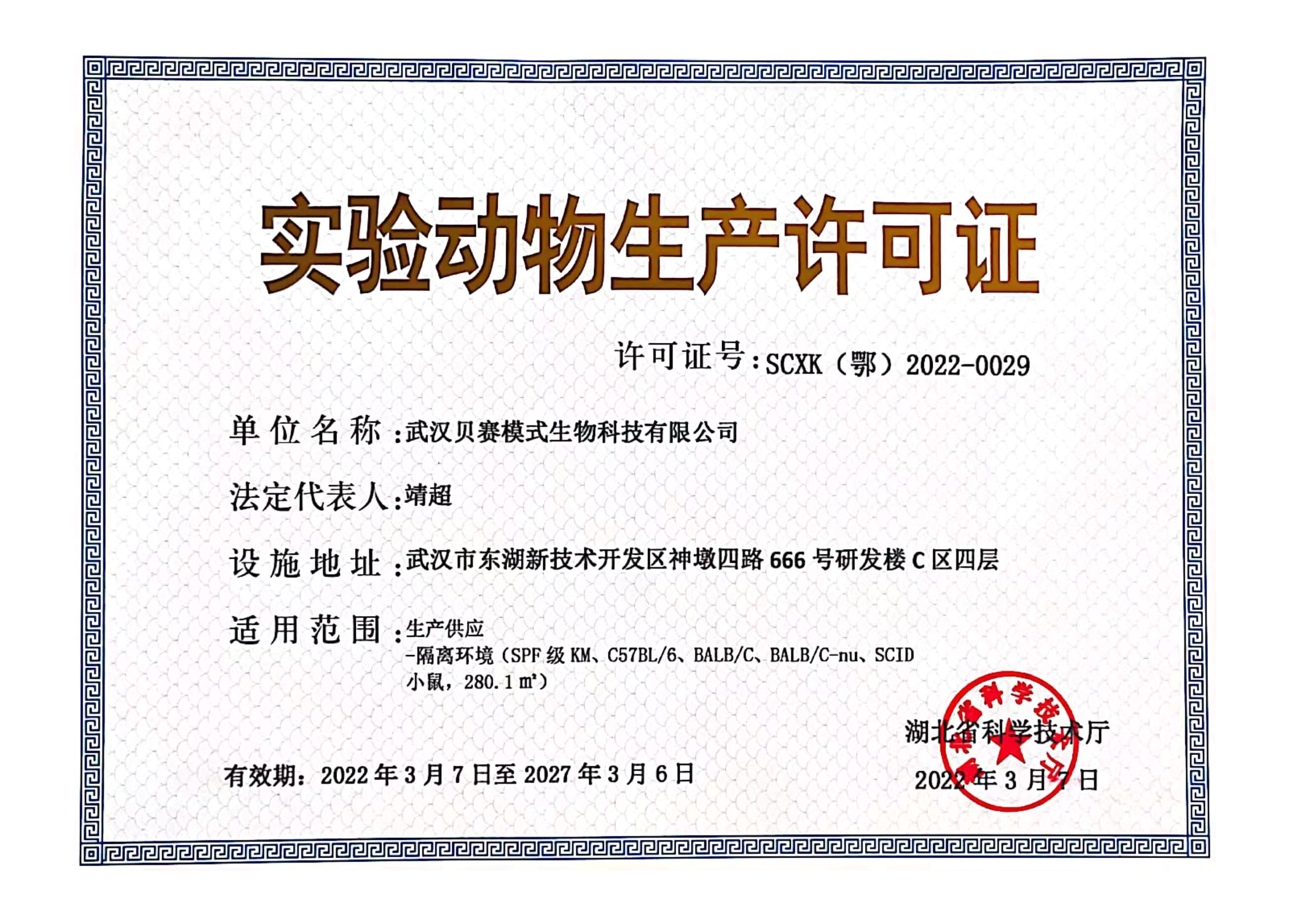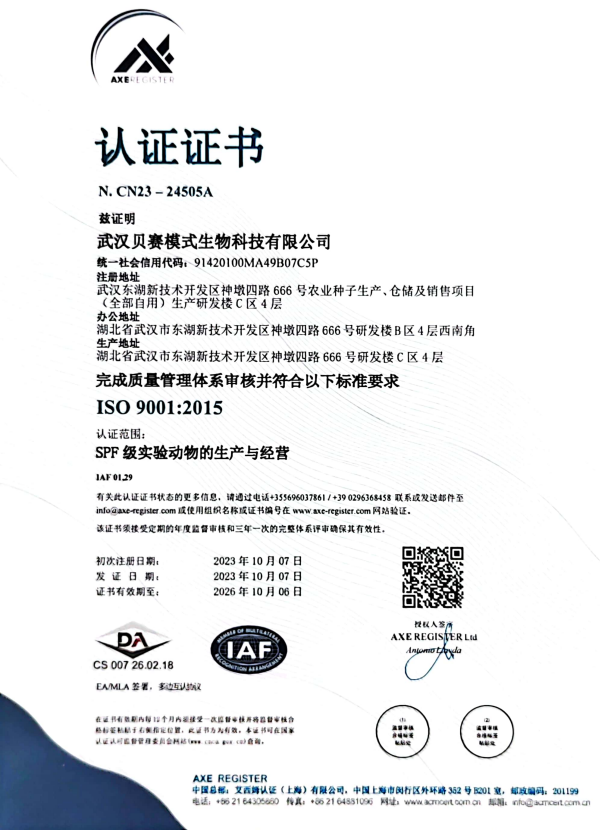 武汉贝赛模式生物科技有限公司(注:武汉贝赛模式生物科技有限公司是武汉纤然生物科技有限公司的全资子公司)位于武汉市东湖高新技术开发区神墩四路666号研发楼C区四层,面积2500㎡。公司入选第十批“3551人才计划”,并获得“国家高新技术企业”认证。公司建成2500㎡模式动物中心,拥有百级净化隔离包和标准化SPF屏障设施,可同时饲养大小鼠共计15000笼,并获得了《动物生产许可证》和《动物使用许可证》。公司依托自主研发的高效基因编辑技术、大片段基因编辑技术等多项发明专利,成功建立了五大技术平台:基因编辑平台、成药性评价平台、动物模型平台、细胞服务平台和共享实验室平台,可为科研机构和新药研发企业提供专业的产品及服务。 硬件优势